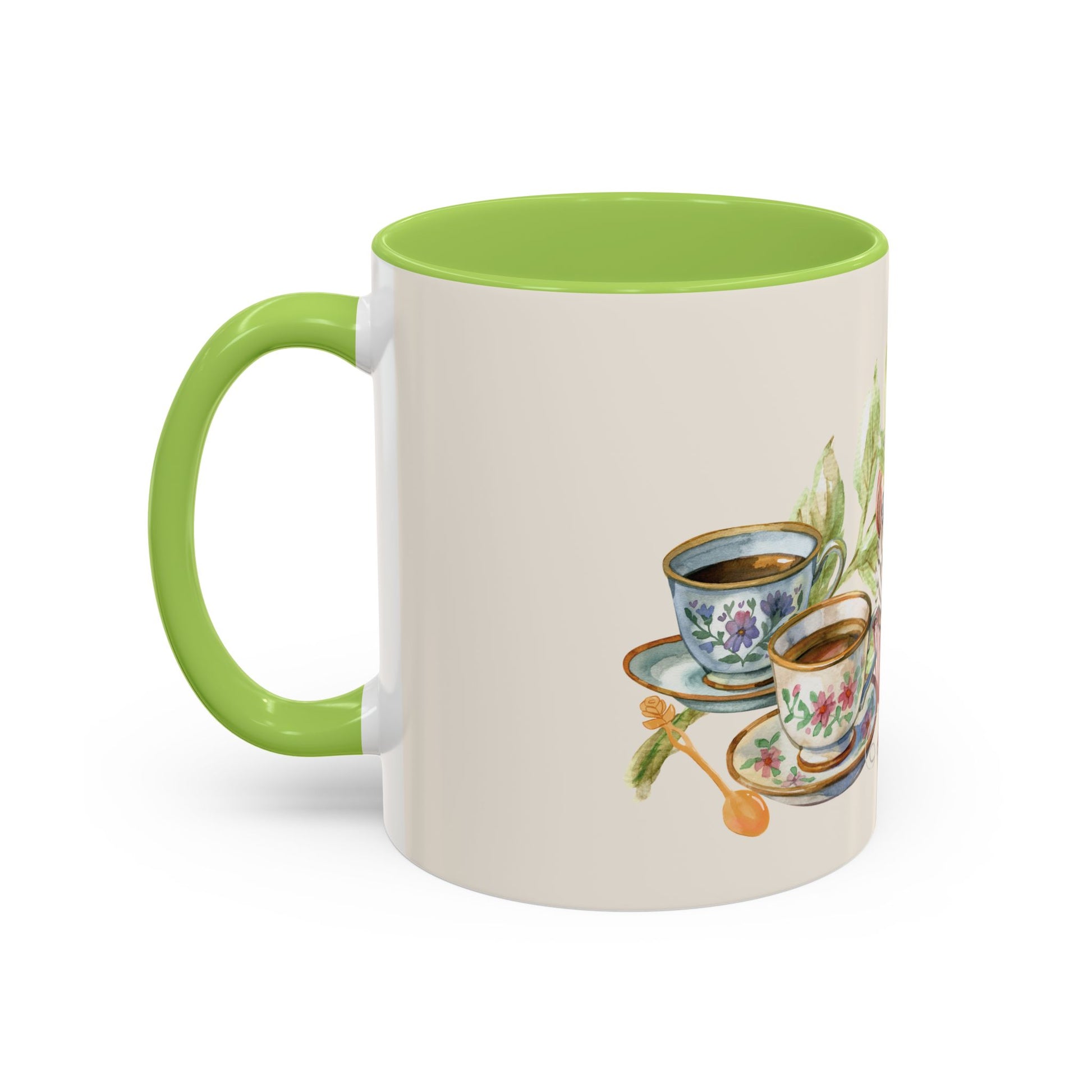 Featuring our original watercolor tea illustration against a soft cream exterior, this ceramic mug brings a touch of garden romance to your everyday ritual. Each interior color offers its own mood — from botanical Garden Green to romantic Rose Blush.