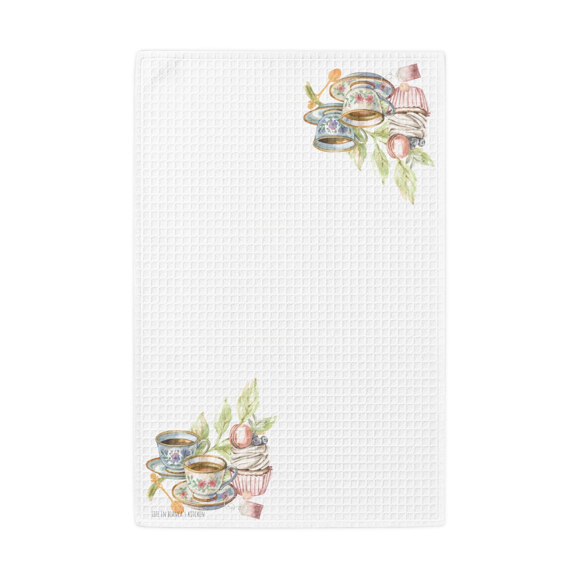 This towel celebrates the gentle rituals of tea, conversation, and slow afternoons. The lightweight waffle weave texture makes it both beautiful and practical for everyday kitchen life.